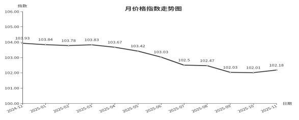 据临沂商城价格指数信息系统监测,本月临沂商城月价格总指数为102.18点配资著名炒股配资门户,环比上涨0.17点,涨幅0.17%;同比下跌1.75点,跌幅1.68%;与年初比下跌1.66点,跌幅1.60%。